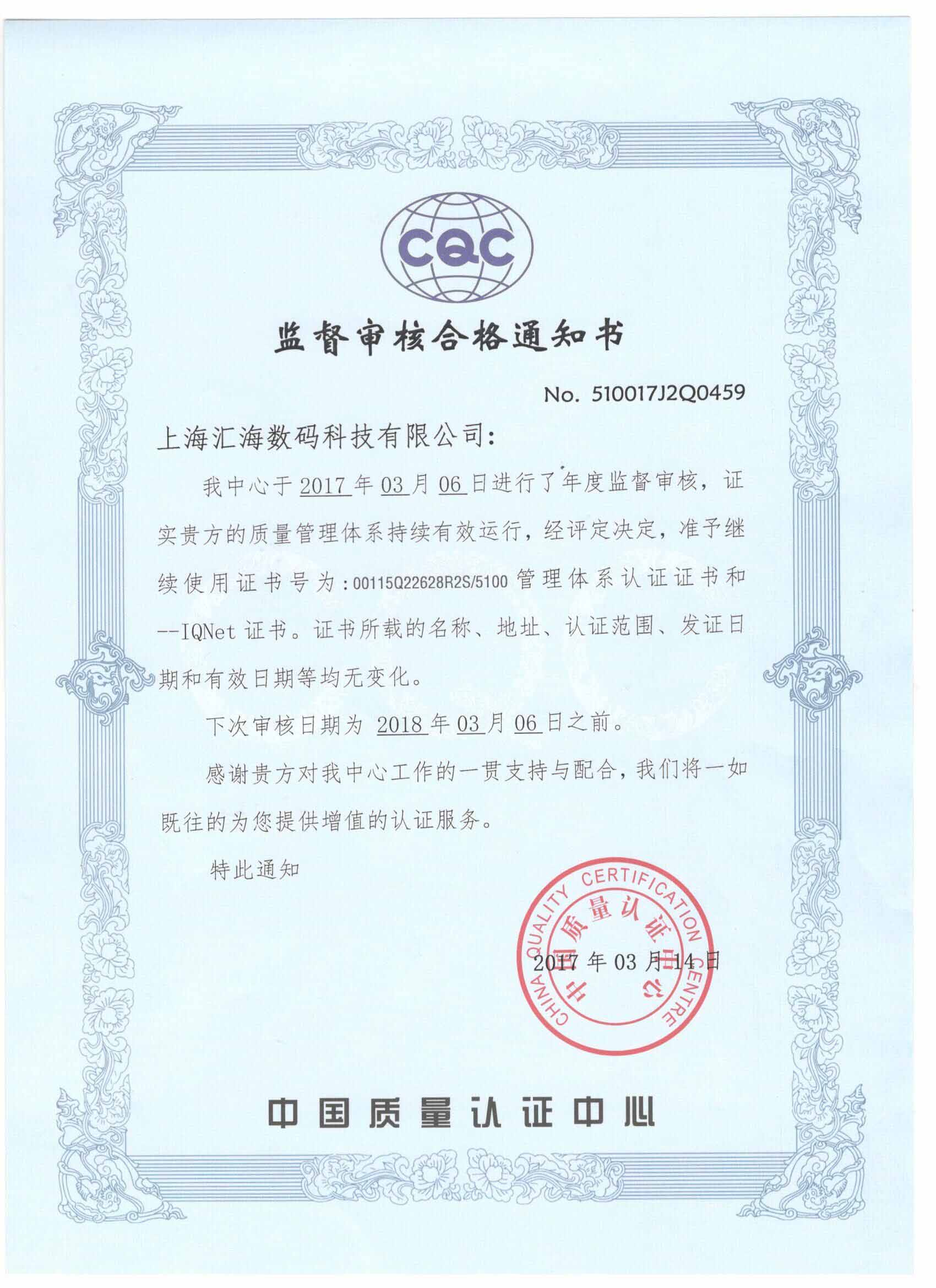 ISO質量證書
