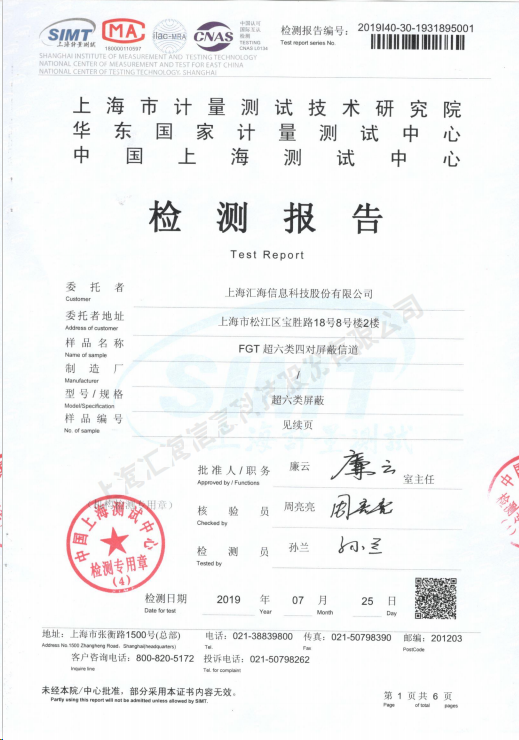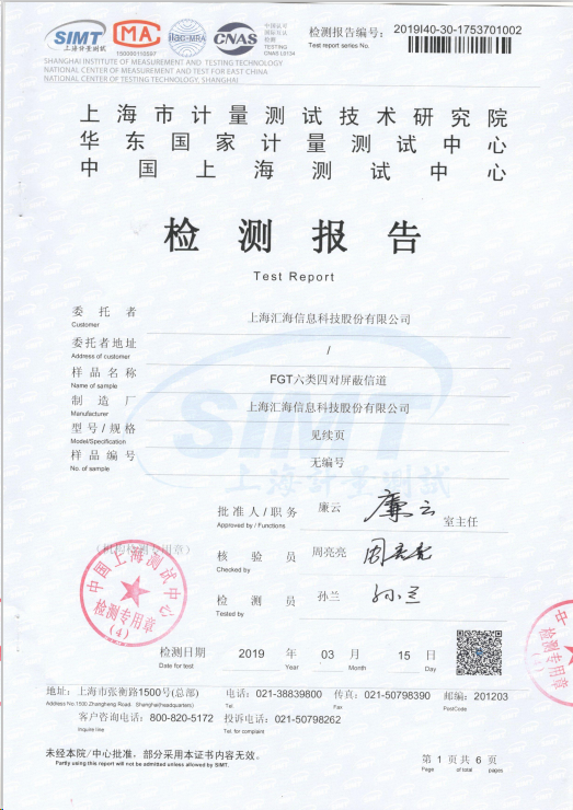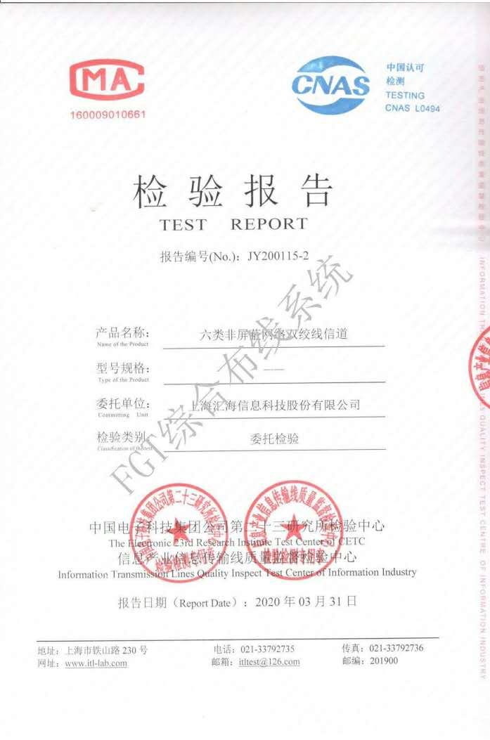 六類屏蔽網線檢測報告