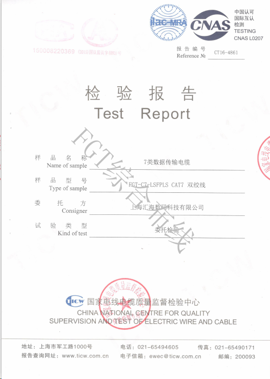 七類網絡雙絞線檢測檢測報告