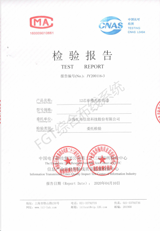 12芯單模光纜檢測報告