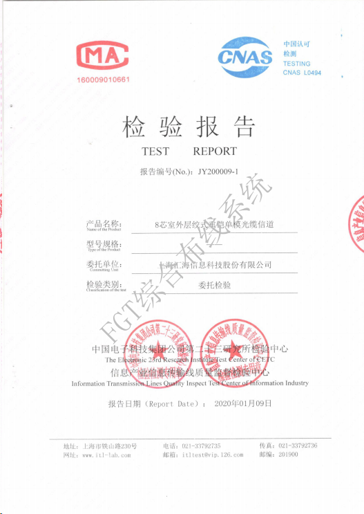 8芯室外單模鎧裝光纜檢測報告