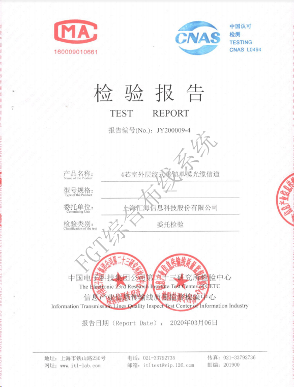 4芯室外層絞式重鎧單模檢測報告