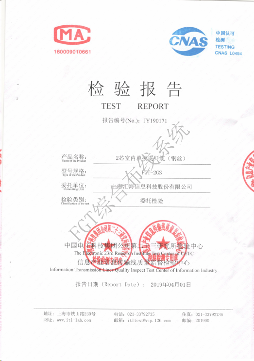 2芯室內單模皮纖纜檢測報告